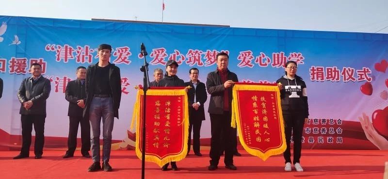 现场为38名农村低保及建档立卡贫困家庭大学生及患病儿童发放捐助资金共计26.5万元。仪式现场,来自兰州大学的受助学生魏阳阳当场致感谢信,受助对象代表还分别给天津市慈善协会及永登县民政局赠送锦旗以表示感谢。