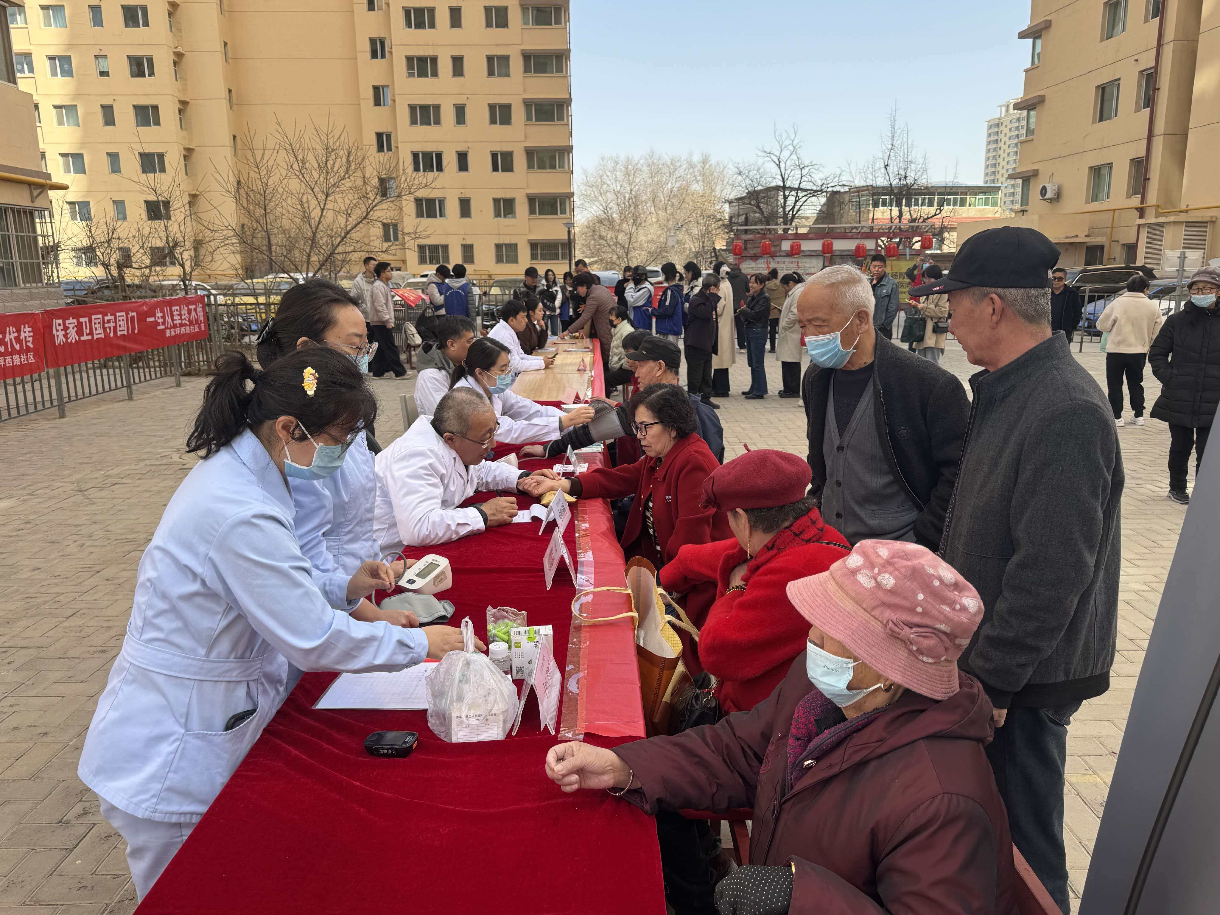 3日下午2时许,便民集市准时开启。健康服务专区前人气高涨,兰州市第二人民医院西院区罗张兴、任佳、崔海峰、徐冠华、缪岸桐等医护人员,为居民免费提供测血压、中医把脉、口腔检查等服务,针对老年人常见慢性病现场答疑解惑、给出调理建议,把专业健康关怀送到居民家门口。