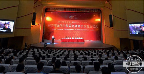 8月21日上午,2017兰州晨报利群阳光助学金发放仪式暨阳光学子励志报告会在兰州市黄河剧院举行。