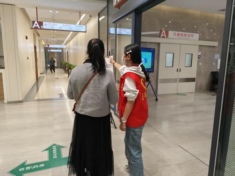 小鲁是西北师范大学哲学与社会学院的大一学生,这是她第三次来做晚间急诊志愿者。晚上六点半,天已经完全黑透,寒风在窗外打着旋,她和另外两名同学裹紧外套,准时出现在医院门口。经过岗前简短的复盘培训,确认好分诊流程、缴费节点和沟通要点后,便迅速投入到工作中。刚走到岗位上,小鲁就看到一位年轻母亲抱着哭闹不止的孩子,手里还攥着一堆化验单、缴费单,满脸焦急地在大厅里打转,立刻上前轻声安抚。“阿姨,您别着急,急诊缴费在这边,您抱着孩子不方便,我来帮您办。” 她接过母亲手里的单据,目光快速扫过,确认好缴费项目,然后侧身引路,刻意放慢了脚步,配合着母亲抱着孩子的节奏。